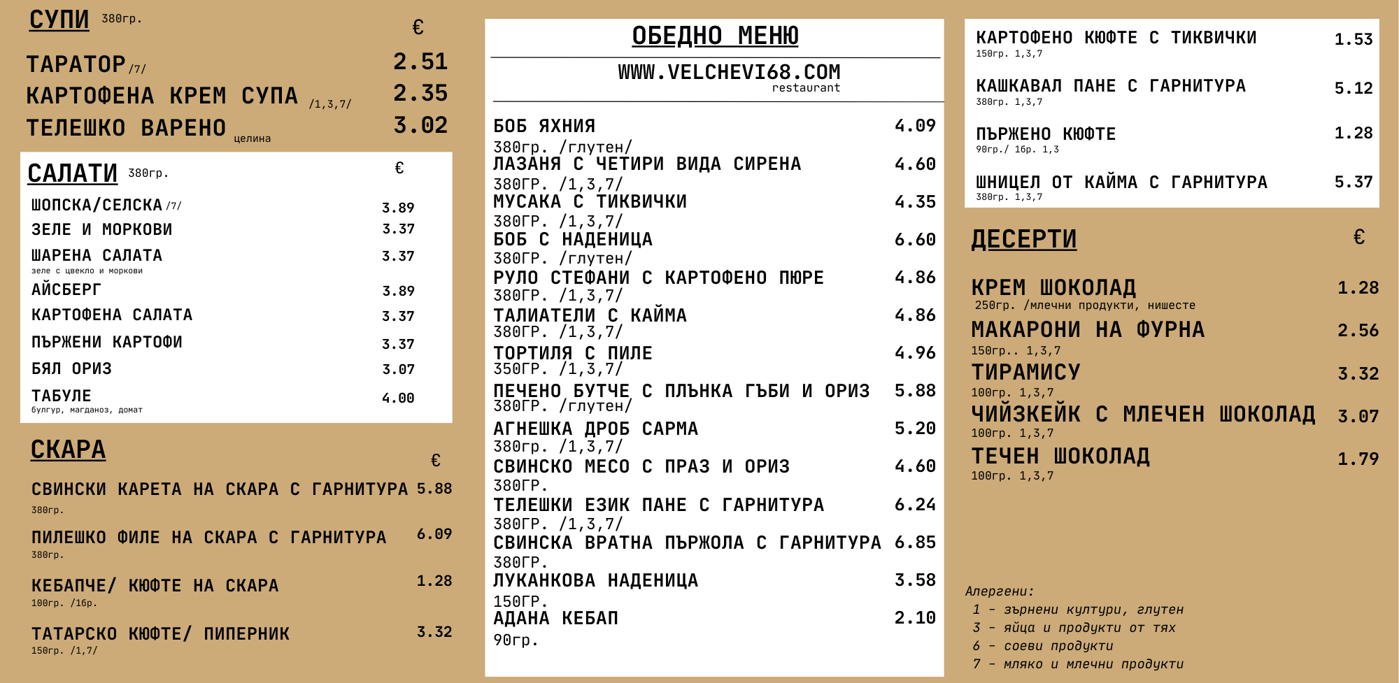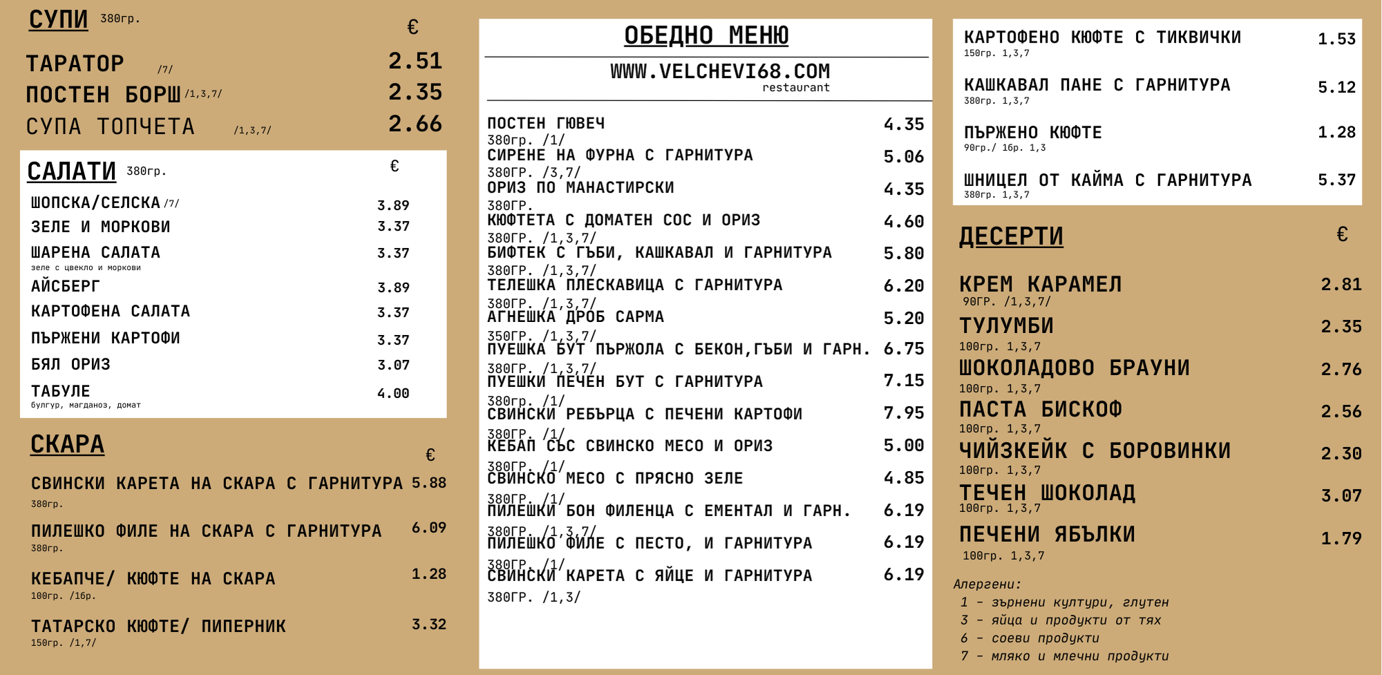 Здравейте, Семеен ресторант Велчеви е ситуиран в Интер Експо Център, наш дългогодишен партньор, затова и по време на големи изложения е възможно да не доставяме храна.